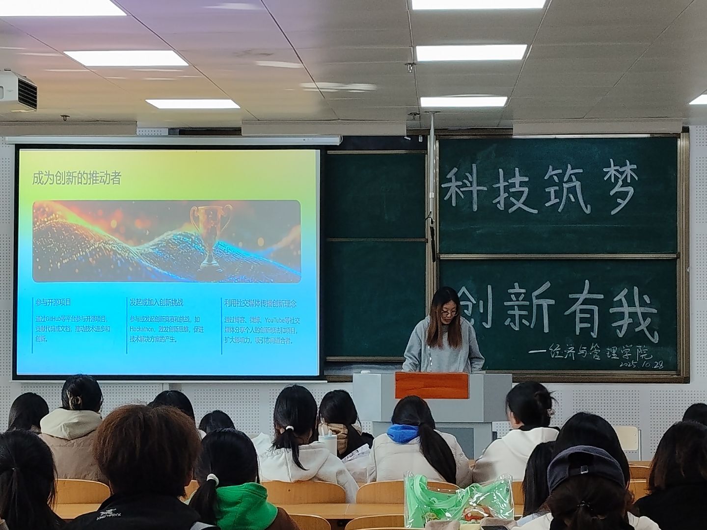 为推动科技创新教育发展,激发学生创新意识与提升科技素养,弘扬科学精神,经济与管理学院于10月28日在教学南楼318教室组织开展“科技筑梦,创新有我”主题团日活动,学生会全体成员参加此次活动。