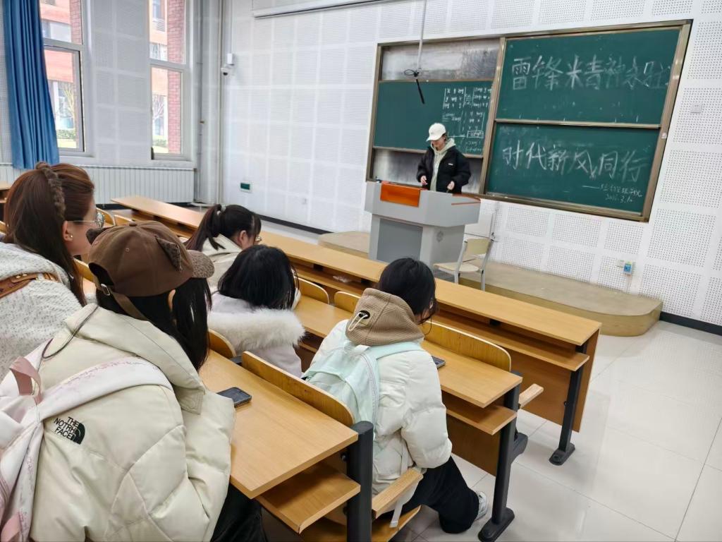 活动伊始,学生代表通过讲解PPT的形式,以详实的历史资料与珍贵的影像图片,带领同学们穿越时光长河,回顾雷锋同志的生平事迹。从雷锋同志的成长经历,到他爱岗敬业、助人为乐的点滴故事,层层递进地展现雷锋精神的核心内涵。随后,学生代表通过生动地讲解,将雷锋精神从个人的道德实践,迅速延伸至新时代青年的责任担当,阐述雷锋精神在当代的传承与发展的过程娓娓道来。最后,同学们纷纷表示,在今后的学习生活中,将以雷锋同志为榜样,传承和弘扬雷锋精神,把奉献之情转化为实际行动,努力学习专业知识,提升自身本领,以青年之担当,在新时代的征程中贡献青春力量。