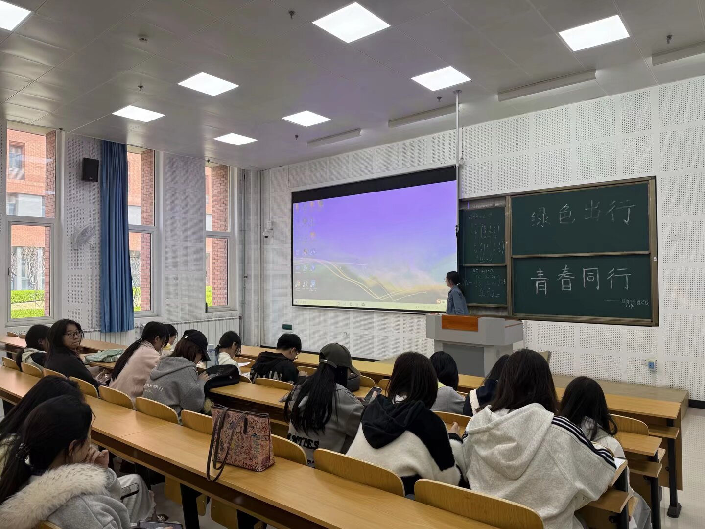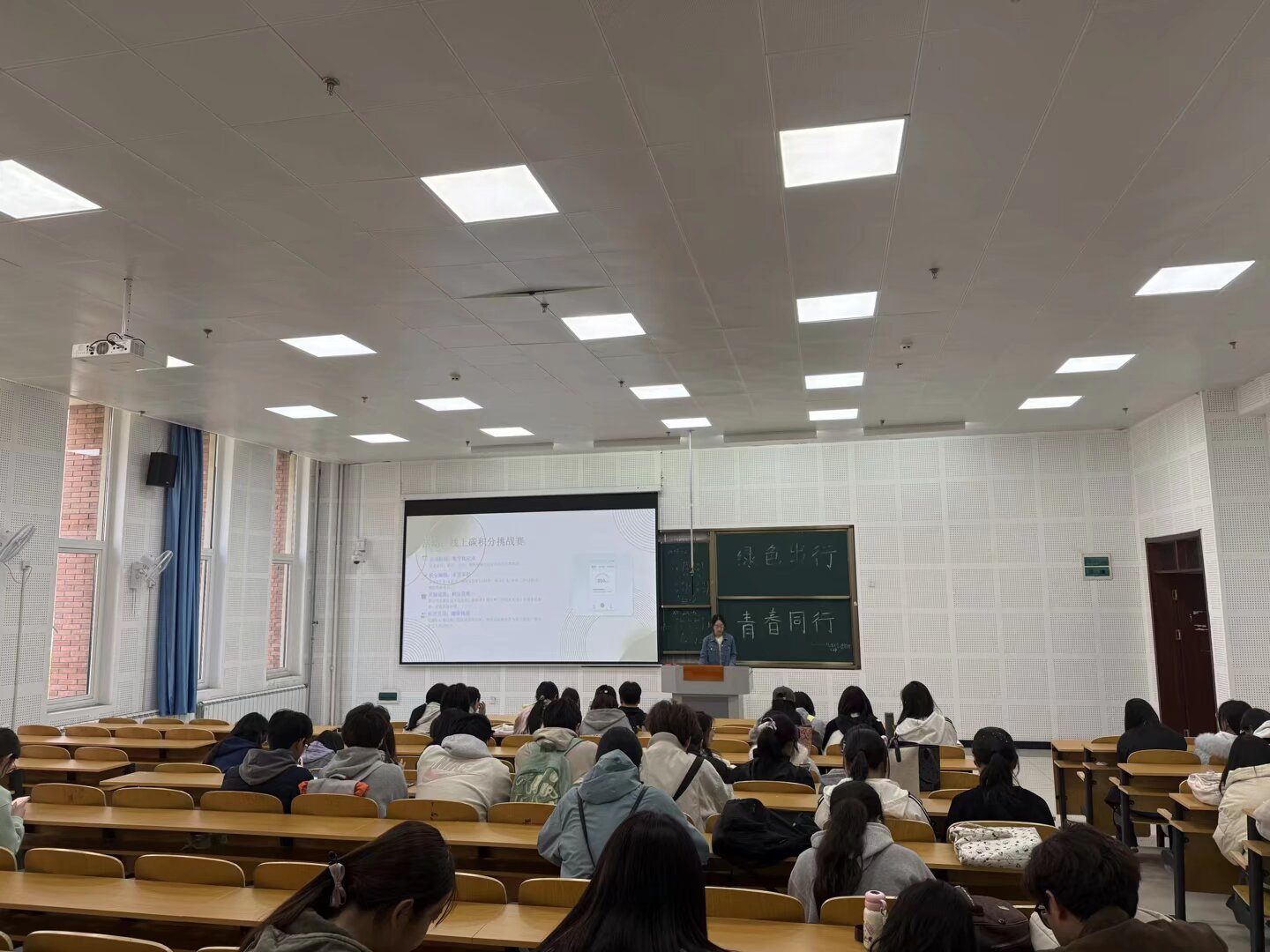 活动伊始,学生代表通过讲解PPT的形式,以详实的环保数据与生动的案例图片,带领同学们认识绿色出行的核心内涵。从当前城市交通面临的污染问题,到日常出行产生的碳足迹,层层递进地展现绿色出行推广的必要性。随后,学生代表通过生动讲解,将共享单车、公共交通、步行等绿色出行方式在日常生活中的具体实践娓娓道来,展现青年一代在绿色出行中可发挥的积极作用。最后,同学们纷纷表示,在今后的学习生活中,将以环保先锋为榜样,传承和践行绿色理念,把环保之心转化为实际行动,努力学习专业知识,提升自身本领,以青年之担当,在新时代的征程中贡献青春力量。