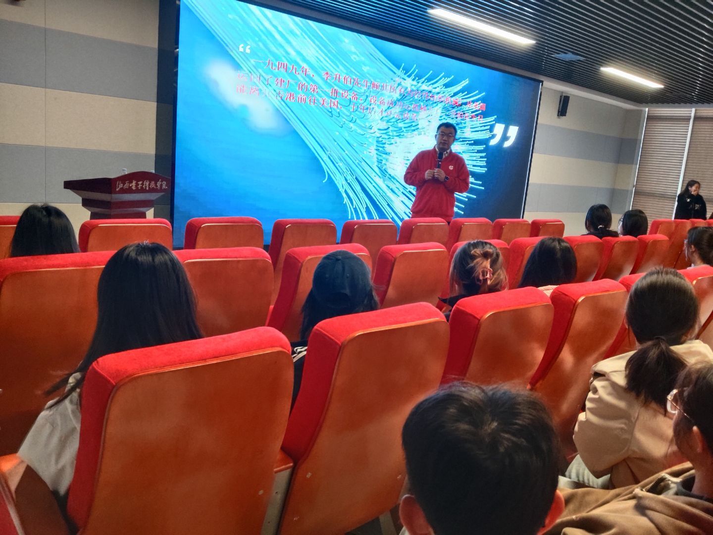 讲座伊始,王总以风趣的自我介绍开场,迅速拉近与在场同学的距离。随后,他采用“讲解+PPT演示”的方式,以时间线为脉络,通过“1分钟自动冲孔机完成6000次喷丝头微孔冲压”“1天内工程师绘制21页详细图纸、巡检工程师车间步行28971步并发放10张技能奖励小红花”等实例,直观展现企业高效的生产制造能力。以此为切入点,王总深入剖析企业实现高效高质发展的核心逻辑——借鉴“海底捞”人性化管理模式,通过“以人为本”的管理理念、完善的激励机制、规范的法定节假日休息保障等举措,构建人企协同发展的良好生态。讲座尾声,同学们均表示收获颇丰,王总亦热忱表态,后续将为同学们提供职场相关的指导与帮助。